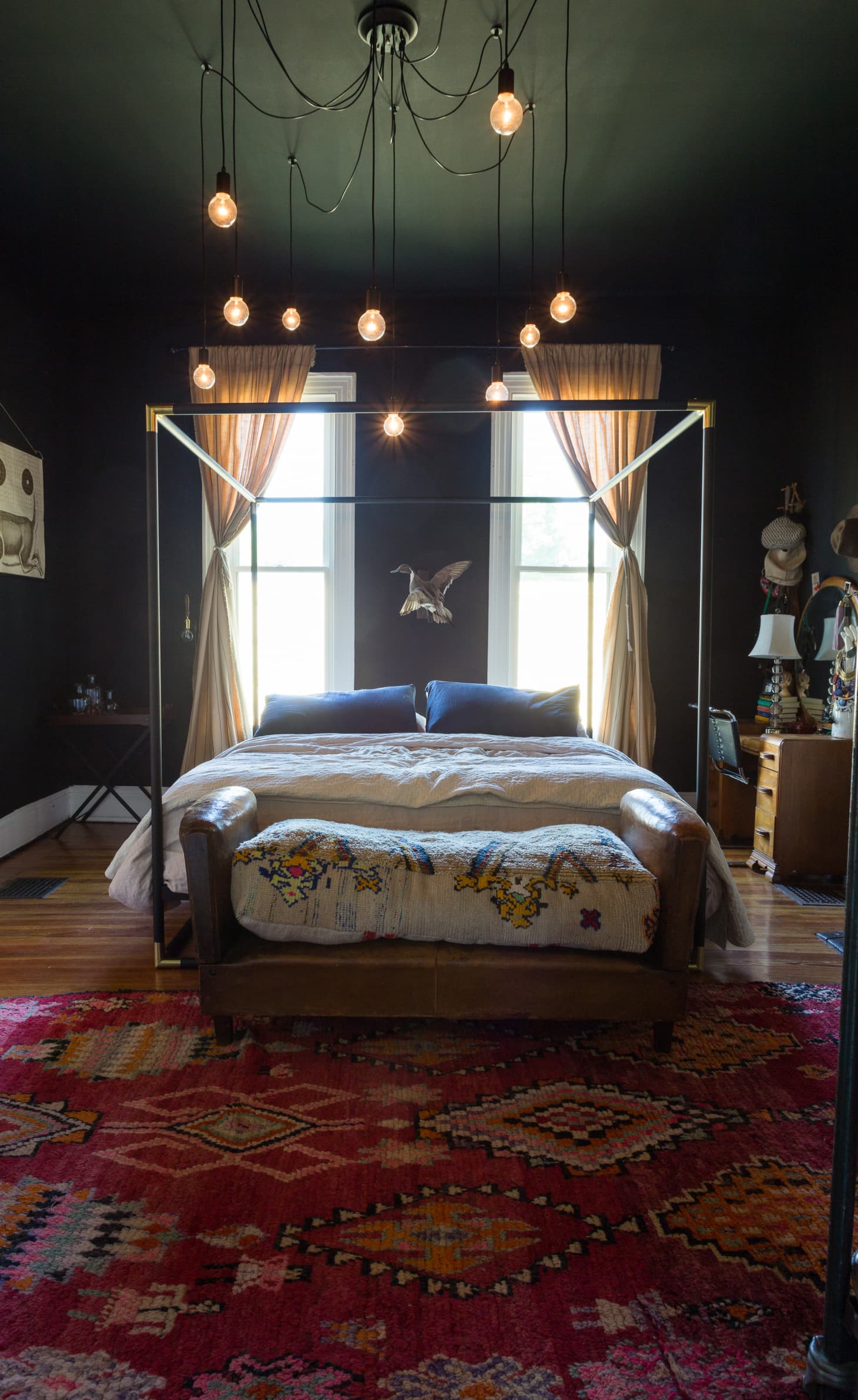 A black accent wall in the bedroom inevitably becomes the focal point of the setting. This is a really cute idea for a kid's bedroom, a way to make the bed look like a miniature house, a place where they can feel cozy and safe. The most common scenario here is a room clad almost entirely in white finding its true meaning with the addition of a striking and stylish dark accent wall! With less coming through, i. Going dark with a space tends to make it feel polished and intentional, and there's something really satisfying about beginning and ending the day in a from charcoal gray bedding to dramatic black curtains, these 20 bedrooms might convince you to go dark the next time you overhaul your bedroom. After all, think about how much time you spend in there while you sleep (not to mention other activities). The dark color suits it perfectly here. One last room that falls somewhere in between moody and calm, this bedroom uses contrast to the highest advantage. While light colors can help a small room appear bigger, they aren't so great at. Check out the full tutorial on themerrythought for more details. Create a colorful boho bedroom with these 8 simple steps for using bohemian inspired decor in your bedroom and rest of your home! How do you make more closet space in your bedroom? Just because a room lacks natural light doesn't mean you have to settle for a dark space.